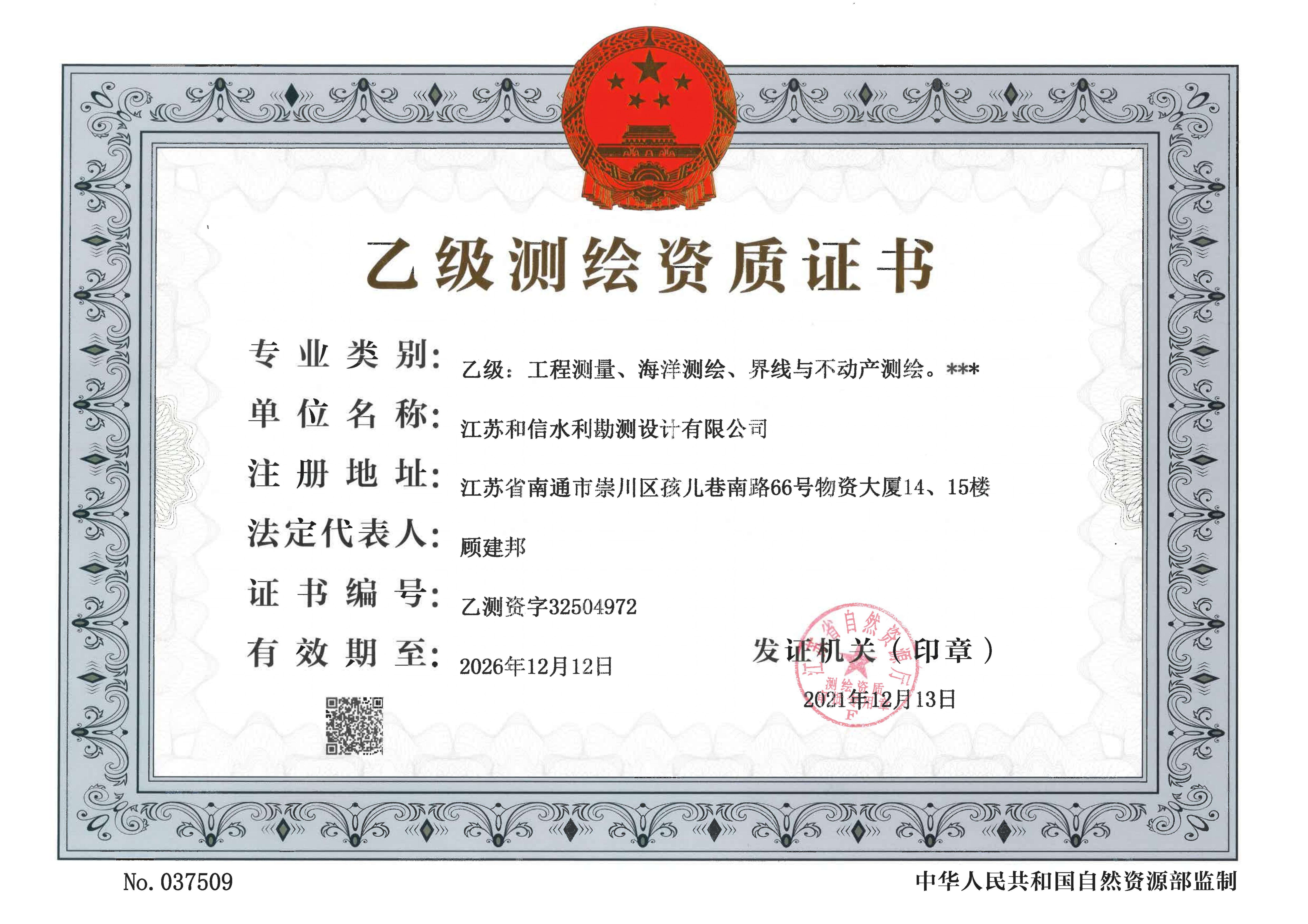 乙級(jí)測(cè)繪資質(zhì)證書(shū)