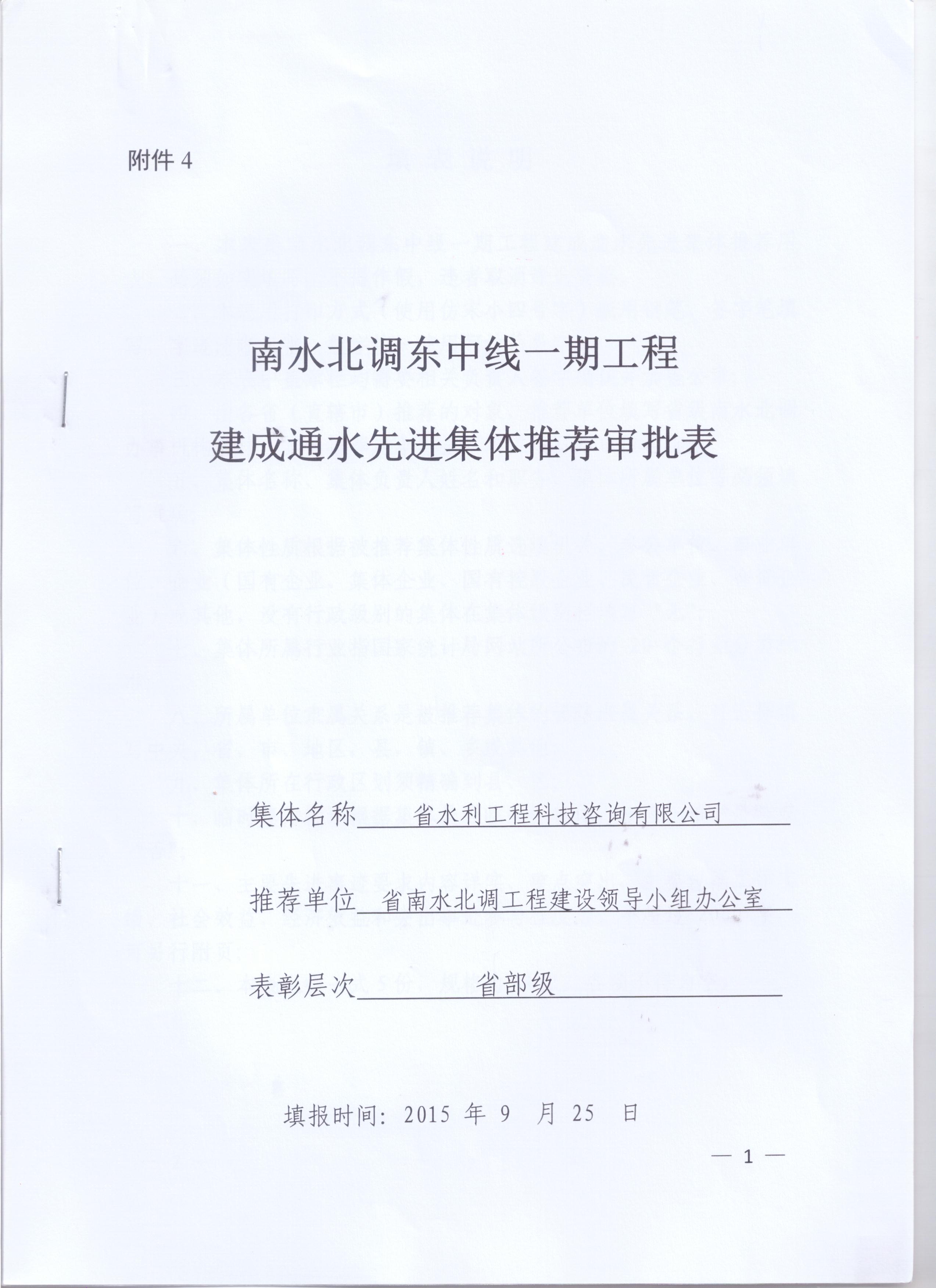 > 南水北調(diào)東中線一期工程先進(jìn)集體