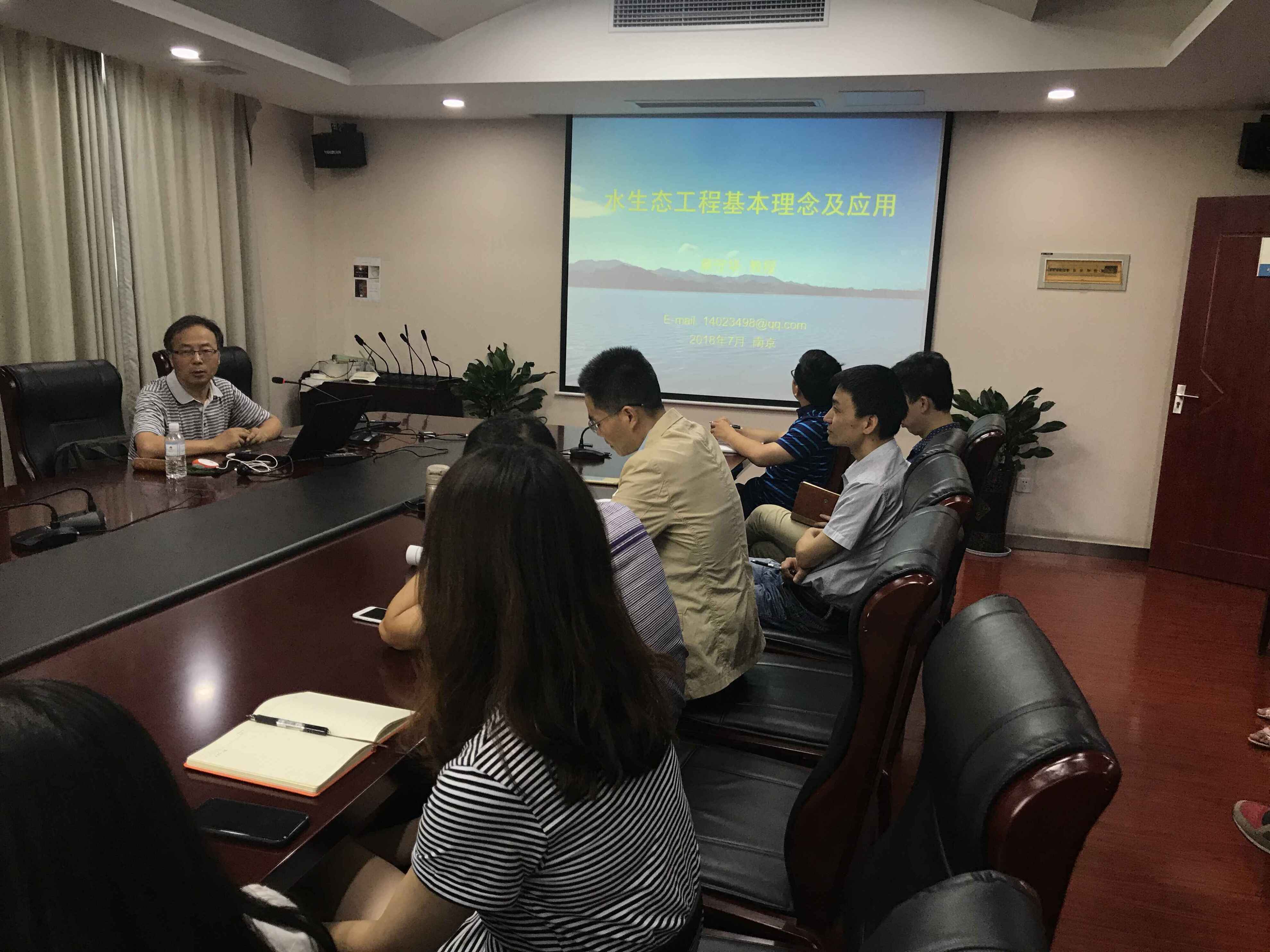 為貫徹落實廳“生態(tài)河湖建設(shè)”精神,增加公司員工“生態(tài)河湖”專業(yè)知識,提高公司員工“生態(tài)河湖建設(shè)”意識,拓展思考問題視野。7月19日公司邀請了揚州大學(xué)蔡守華教授來公司講授“水生態(tài)工程基本理念及應(yīng)用”。蔡教授從:已建的阿斯旺大壩、阿姆河引水灌溉工程、三門峽水庫著名的失敗教訓(xùn)和都江堰灌區(qū)著名的成功經(jīng)驗,生態(tài)工程的基本理念,水生態(tài)工程技術(shù),某河道生態(tài)治理案例分析四個方面,深入淺出、理論聯(lián)系已建的工程進行講解,比較系統(tǒng),既有玄妙的思想,又有接地氣的工程實例,大家很受啟發(fā)。其主要觀點如下: 1.生態(tài)工程就是“心態(tài)工程”, 關(guān)鍵取決于基本理念。生態(tài)工程要道法自然,發(fā)揮自然的力量;生態(tài)工程強調(diào)人與自然和諧相處,追求人與自然皆有利;生態(tài)工程建議要有系統(tǒng)思維方式,要統(tǒng)籌考慮物種共生與物質(zhì)循環(huán),能量傳遞。 2.生態(tài)河道建設(shè)盡可能避免河道三化,“直線化、斷面標準化、硬質(zhì)化”。河道生態(tài)疏浚:盡量不砍少砍河道坡面樹木,保護當(dāng)?shù)剜l(xiāng)土樹木;不要整條河道全面抽干,保護原有鄉(xiāng)土水生動物;不要整條河道河底全面清淤,保護原有鄉(xiāng)土底棲動物。 3.沙土地區(qū)河道可采用植物籬技術(shù)——香根草籬、柳樹干根籬、有經(jīng)濟效益的黑麥草護坡。 4.生態(tài)渠道建設(shè)強調(diào):大型渠道不要盲目襯砌渠道,避免三面光渠道;防滲襯砌要兼顧生態(tài)保護方面的要求。渠道做到既是輸水渠道,又是綠色走廊,也是景觀帶,才能稱得上是真正的生態(tài)渠道。 5.湖庫水質(zhì)生態(tài)修復(fù)技術(shù)強調(diào):要徹底調(diào)查清楚湖庫生態(tài)系統(tǒng)現(xiàn)狀及生態(tài)本底,湖庫污染源及其發(fā)生這種污染的根源。在此基礎(chǔ)上構(gòu)建湖泊生物群落,形成完整的食物鏈,提高自浄能力。 6.分析南河河道生態(tài)治理案例強調(diào):一個合理的設(shè)計方案必須要調(diào)查清楚河道的生態(tài)本底和現(xiàn)狀;投入河道的底棲動物和沉水植物,要有依據(jù),盡可能同河道原生態(tài)本底;做生態(tài)工程要講究實際效果,不能片面追求“高大上”。