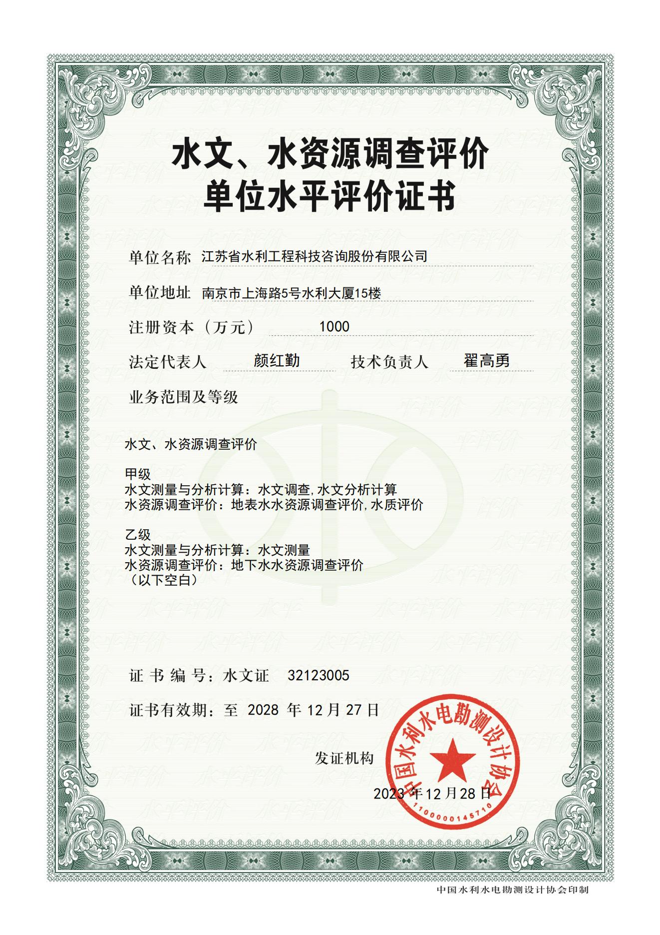 > 水文水資源調(diào)查評(píng)價(jià)電子證書