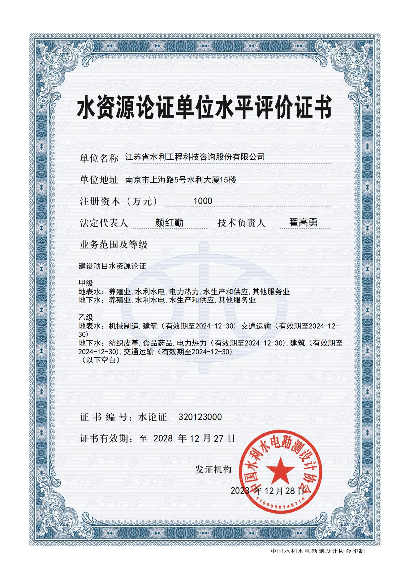 水文水資源調(diào)查評(píng)價(jià)電子證書