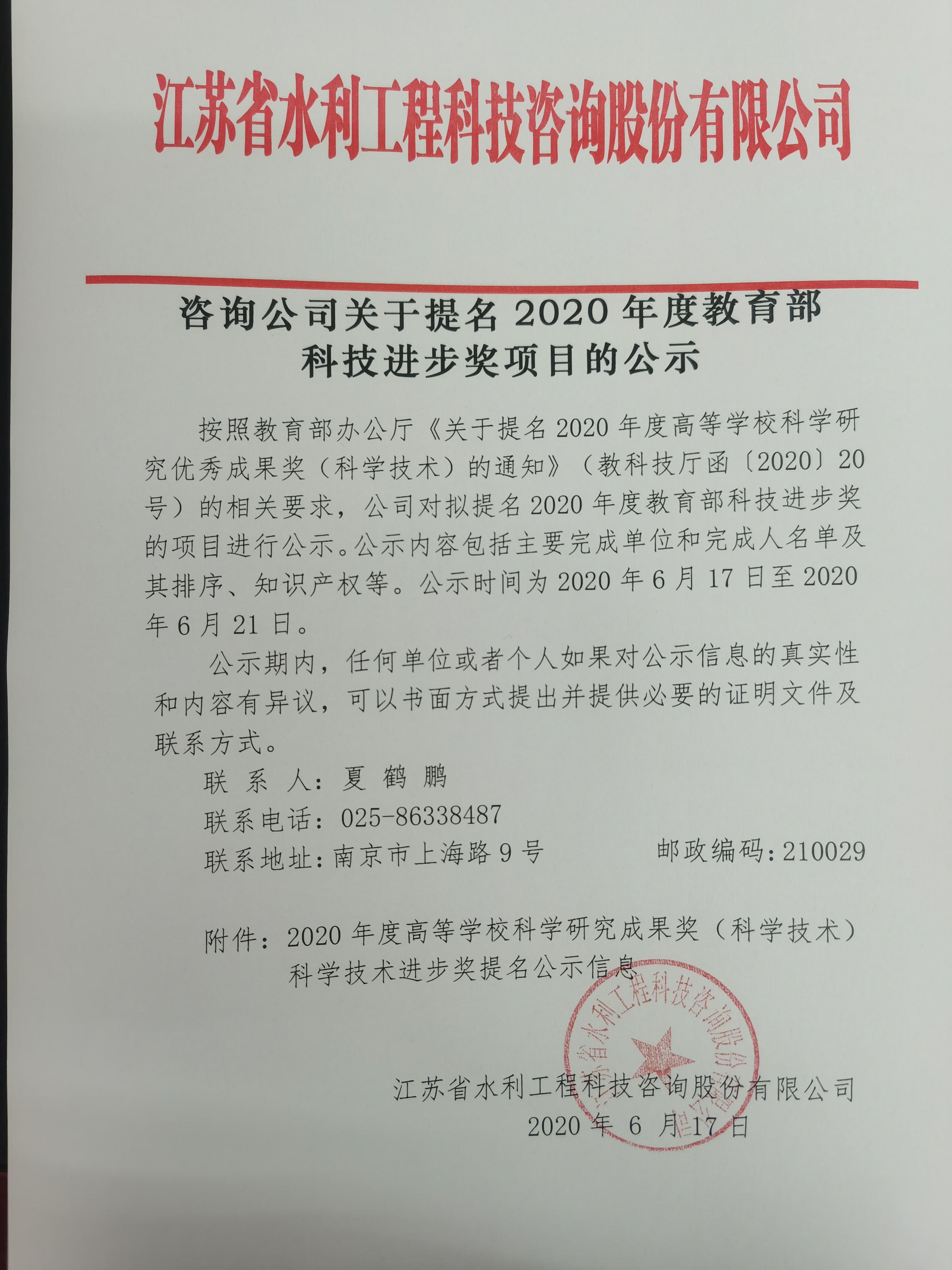 > 咨詢公司關于提名2020年度教育部科技進步獎項目的公示