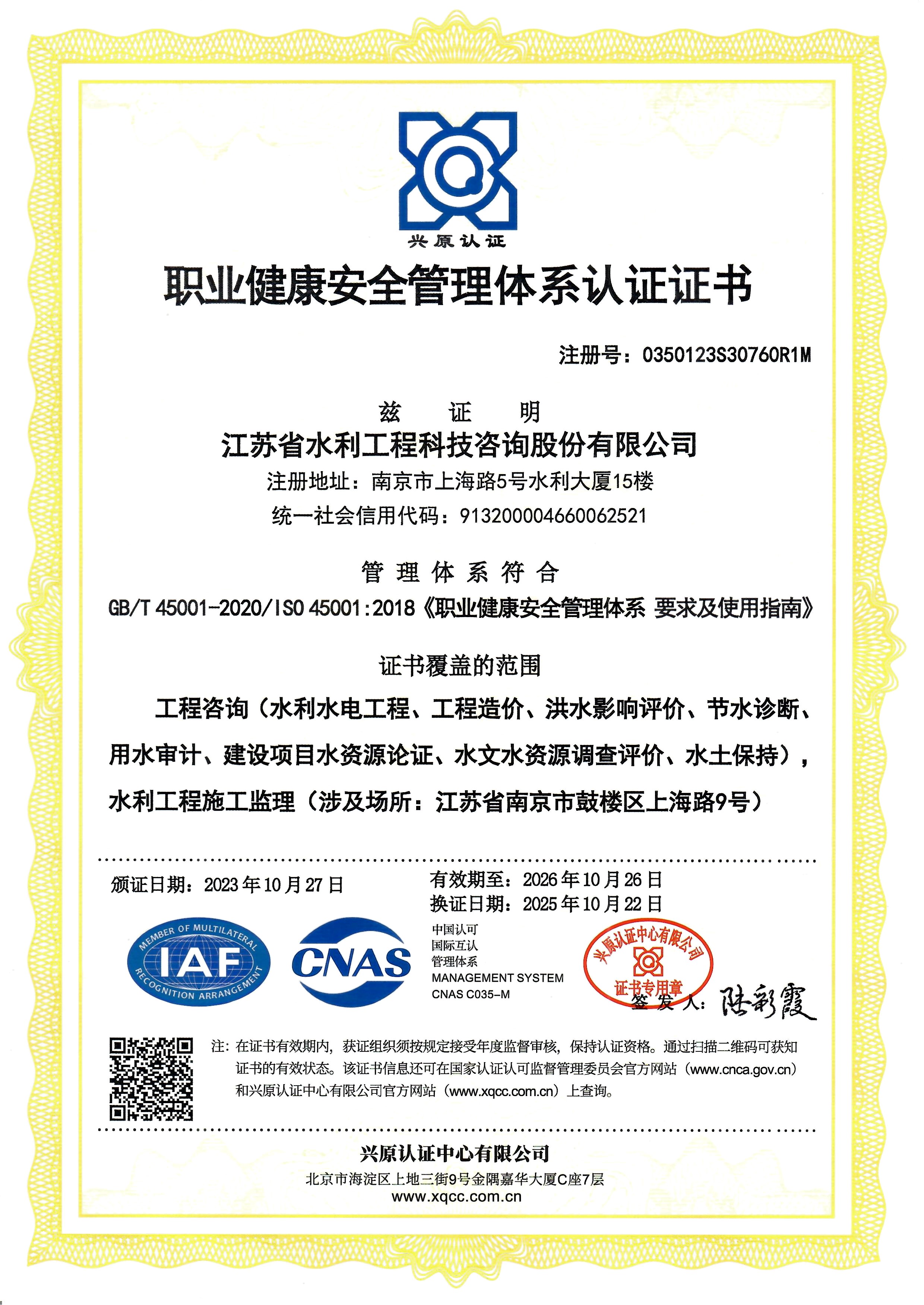 ISO職業(yè)健康管理體系認(rèn)證證書