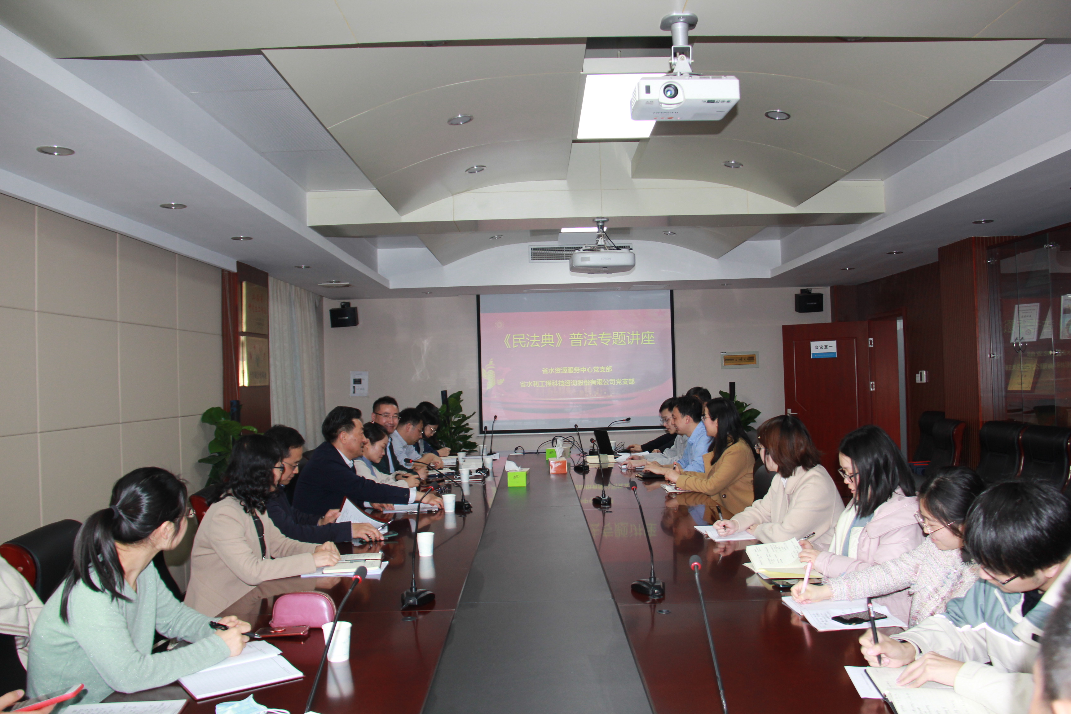 3月26日下午,公司黨支部與省水資源服務(wù)中心黨支部聯(lián)合舉辦了《民法典》普法專題講座,省水資源服務(wù)中心李太民主任主持會(huì)議,公司顏紅勤董事長(zhǎng)出席會(huì)議,兩支部全體黨員參加會(huì)議。