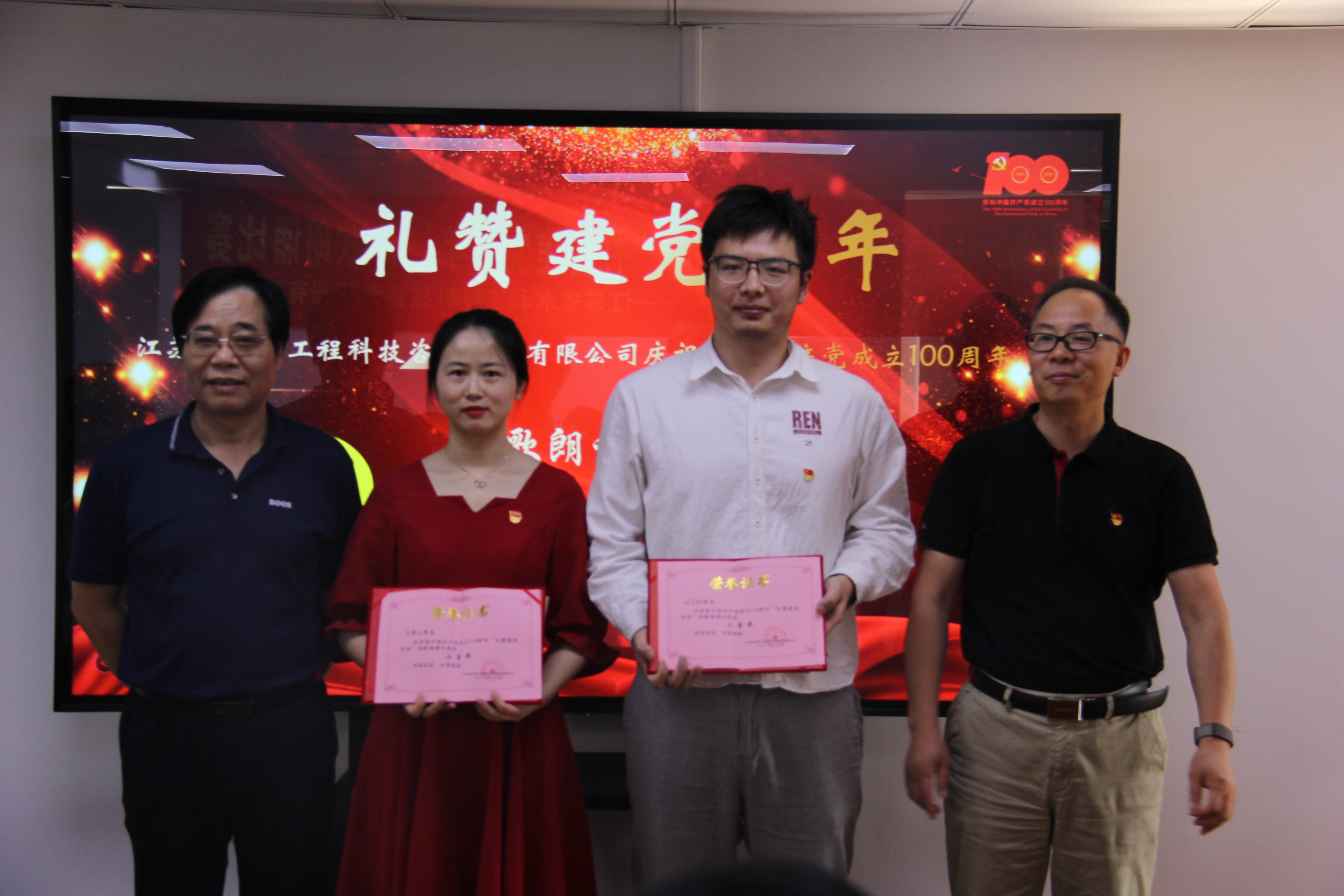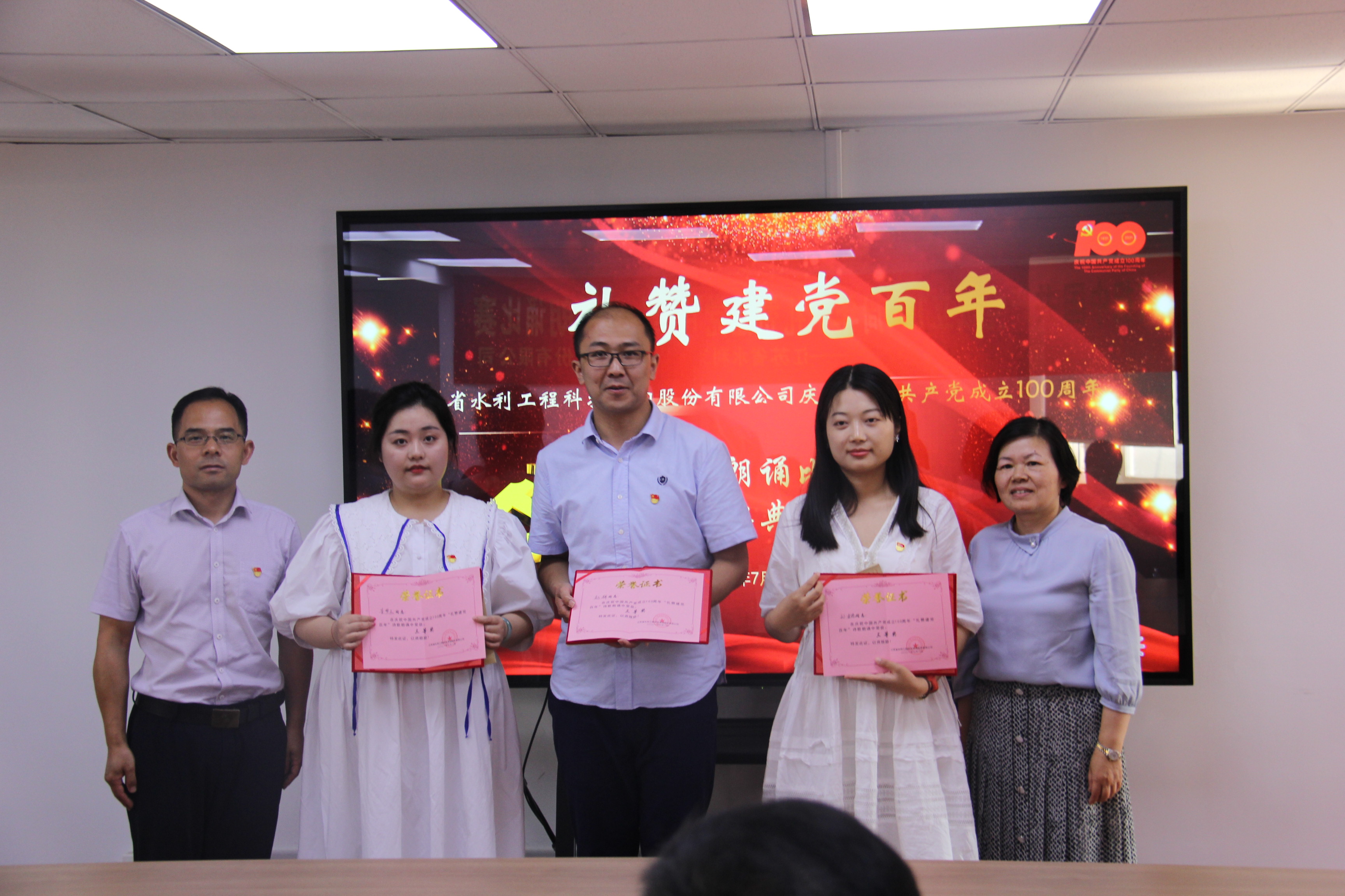 下午,公司舉行了“禮贊建黨百年”詩歌朗誦比賽。 顏紅勤董事長在致辭中對全體黨員提出三點要求:一要不斷加強黨的自身建設;二要不斷提高應對風險挑戰(zhàn)的能力水平;三要以主人翁的姿態(tài)致力于公司的發(fā)展。 賽場上,選手們感情真摯,聲情并茂,字字鏗鏘有力,句句激情昂揚,演繹了對中國共產黨的熱愛,歌頌了祖國和黨的偉大。最后,比賽在“沒有共產黨就沒有新中國”的振奮人心的合唱聲中落下帷幕。