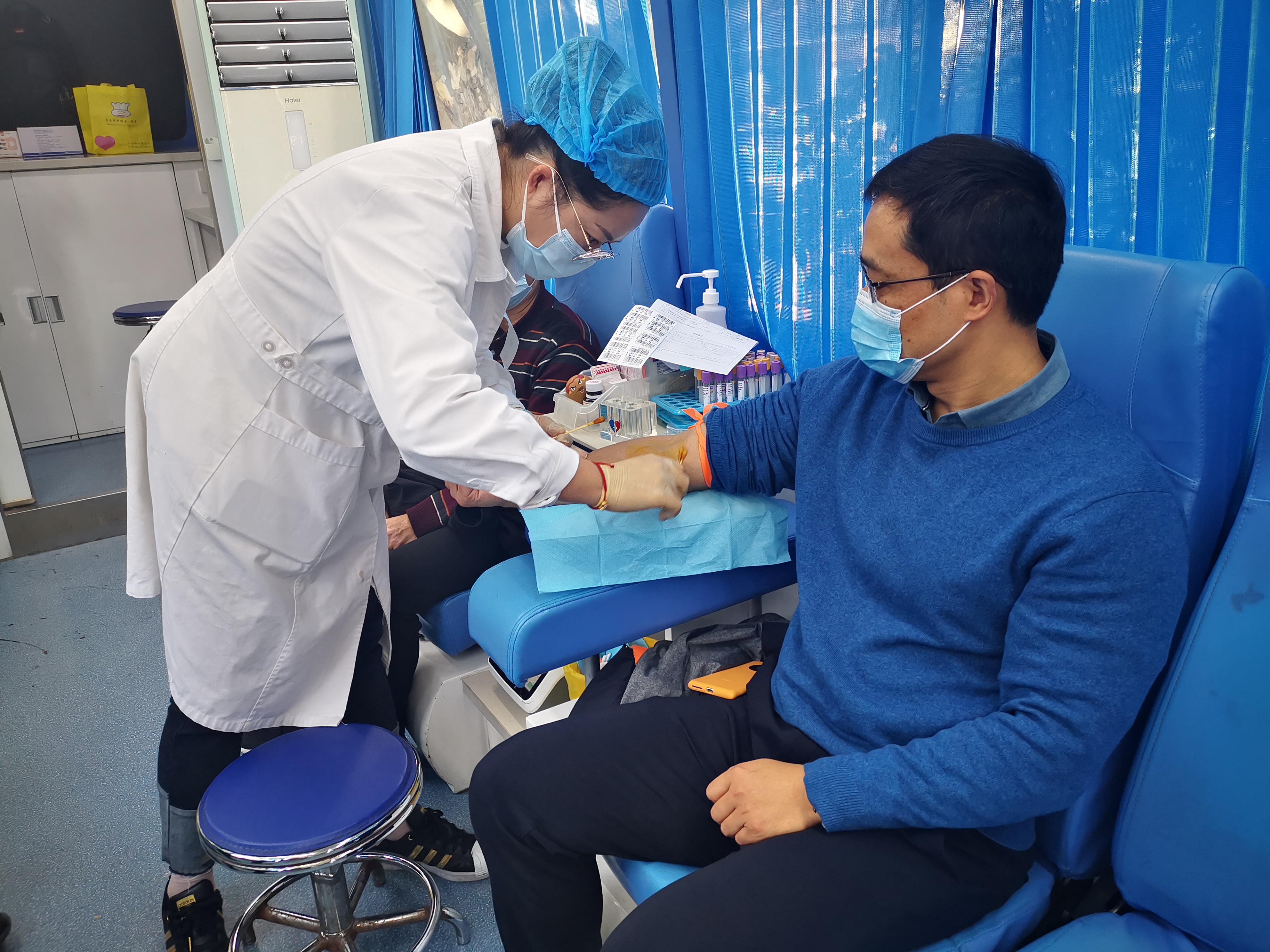 在活動現(xiàn)場,大家積極配合醫(yī)務(wù)人員,主動做好自我防護,有序登記,通過體檢的同志自豪地捋起袖子,獻出自己鮮紅的血液,以實際行動為抗擊疫情奉獻自己的一份愛心。