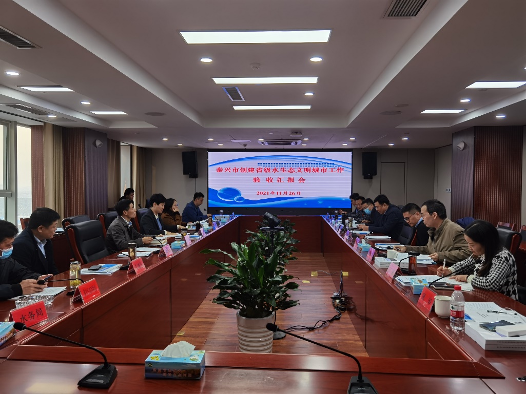 2021年11月26日,泰州市水利局在泰興市主持召開了《泰興市水生態(tài)文明城市建設技術自評估報告》項目驗收會。參加會議的有水利部太湖局、江蘇省水利廳、南京水科院和泰興市政府、發(fā)改委、財政局、住建局、生態(tài)環(huán)境局、水務局等相關單位的代表和特邀專家。我司作為技術自評估報告編制單位參會。