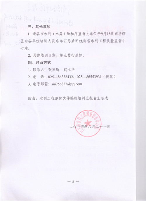 > 關(guān)于舉辦水利工程造價文件編制培訓(xùn)班的預(yù)備通知