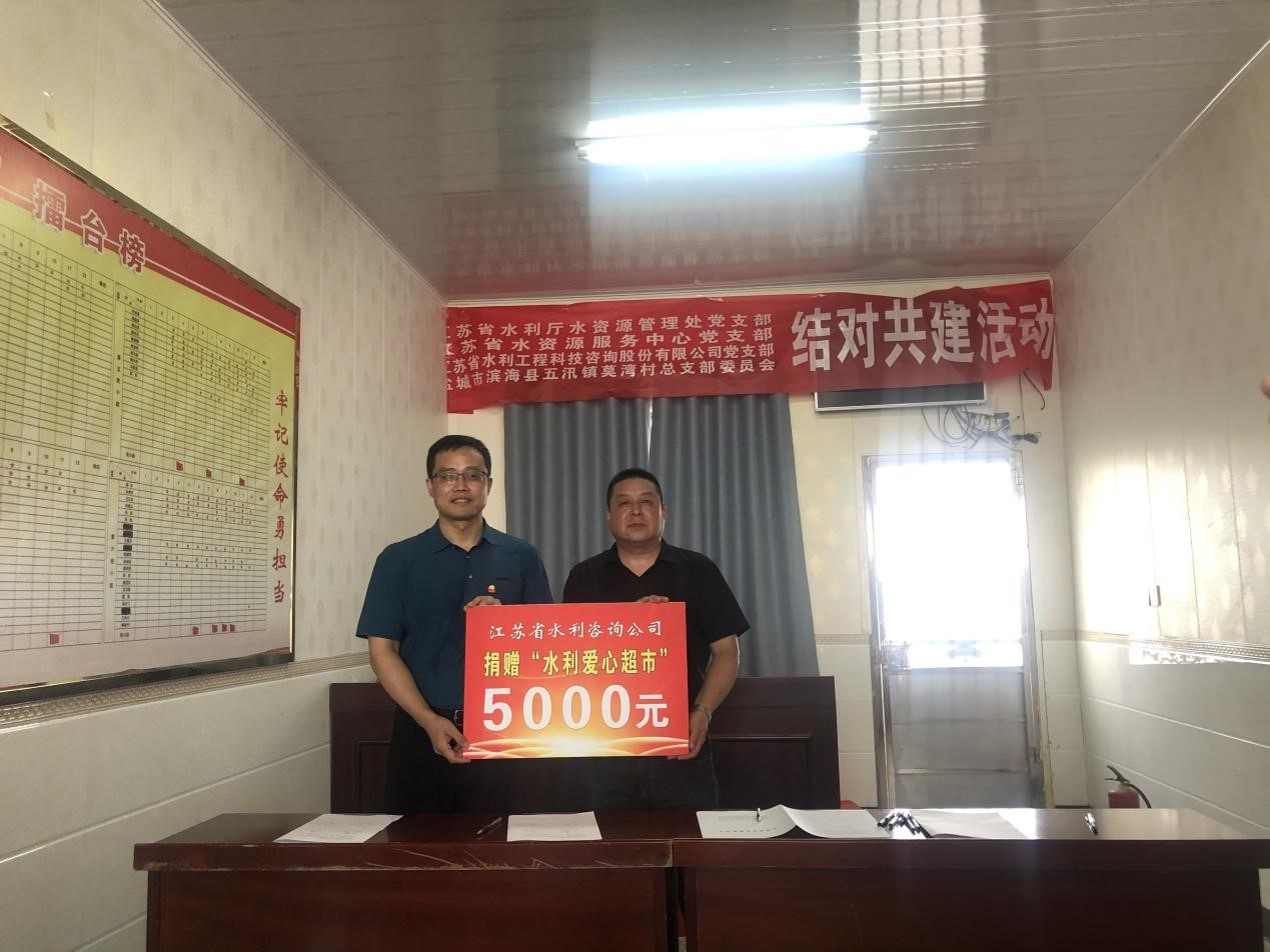 6月23日,公司黨支部書記、董事長兼總經(jīng)理顏紅勤與省水資源服務中心黨支部書記、主任李太民、廳水資源處副處長游洋共同帶領相關工作人員,前往濱?h五汛鎮(zhèn)莫灣村開展支部共建共融活動,以實際行動助力鄉(xiāng)村振興。 本次活動以加強支部共建共融為主題,在交流座談會上,共建四方分別介紹了支部黨建情況,協(xié)商了支部共建重點工作,提出了共建目標與具體方案。  顏紅勤表示在交流座談會上,共建是各方相互學習的重要途徑,我們將全力支持4個支部共建共融活動,以黨建促媒介,以共建為橋梁,充分發(fā)揮水利咨詢單位的資源優(yōu)勢,配合莫灣村在完善村莊規(guī)劃布局、智慧生態(tài)農(nóng)業(yè)建設等方面進行綜合規(guī)劃,用實際行動為莫灣村建設作貢獻。 座談會上,我公司向莫灣村捐贈了扶貧款兩萬元,同向莫灣村“水利愛心超市”捐贈了五千元愛心基金,助力莫灣村鄉(xiāng)村生態(tài)文明建設。
