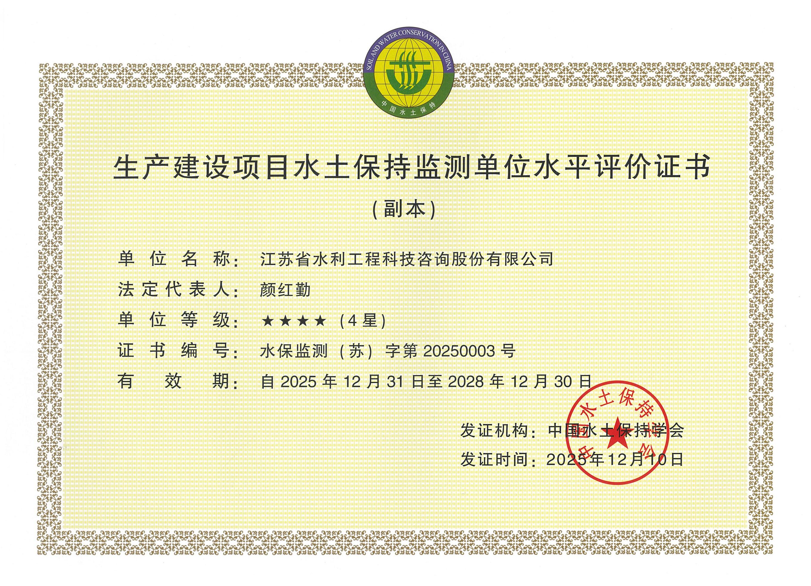生產(chǎn)建設(shè)項目水土保持監(jiān)測單位水平評價證書